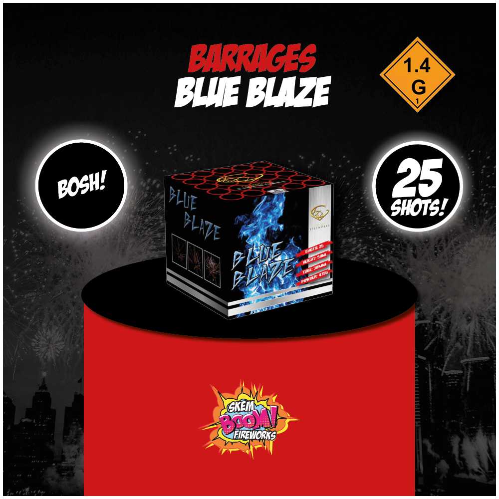 A straight-firing cake that will turn the night sky above your event into a steely blue inferno as 25 shots explode in a cascade of mesmerising arctic colour and booming sound.