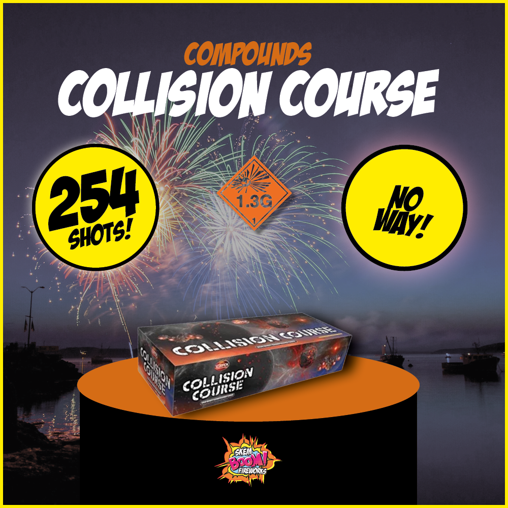 This is a firework you simply cannot avoid if you want your event to be a success. A compound cake unit launching over 250 shots full of crashing noise, crisp colours and mind-blowing effects. Collision Course is a firework that delivers a real impact!