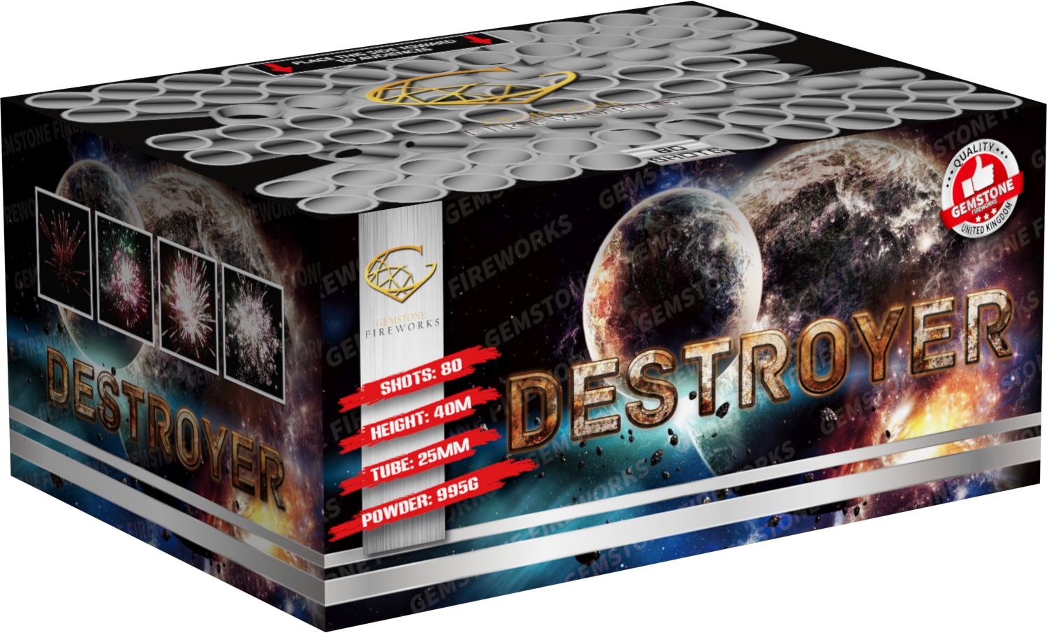 If you are looking for the ultimate finale, let the Destroyer end your event. 80 shots Filling the air with magnificent sounds, breathtaking effects and a multitude of colours all combing to create one incredible pyrotechnic powerhouse of a finish that cannot fail to astonish all your guests.