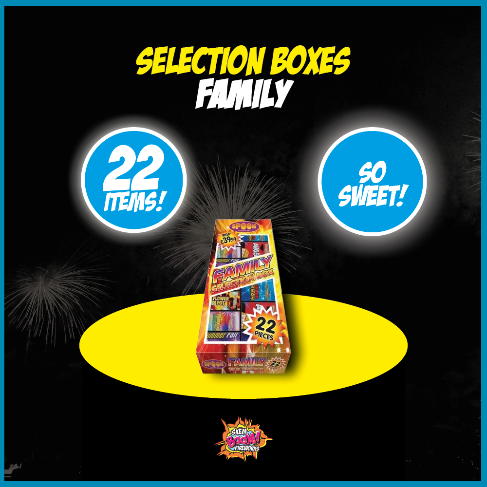 Introducing our outstanding family selection box, a superb value for everyone to enjoy. This collection promises an array of dazzling fireworks, with all the explosions, lights and bangs you need to create a memorable gathering. There’s something for everyone in this superb all-rounder.