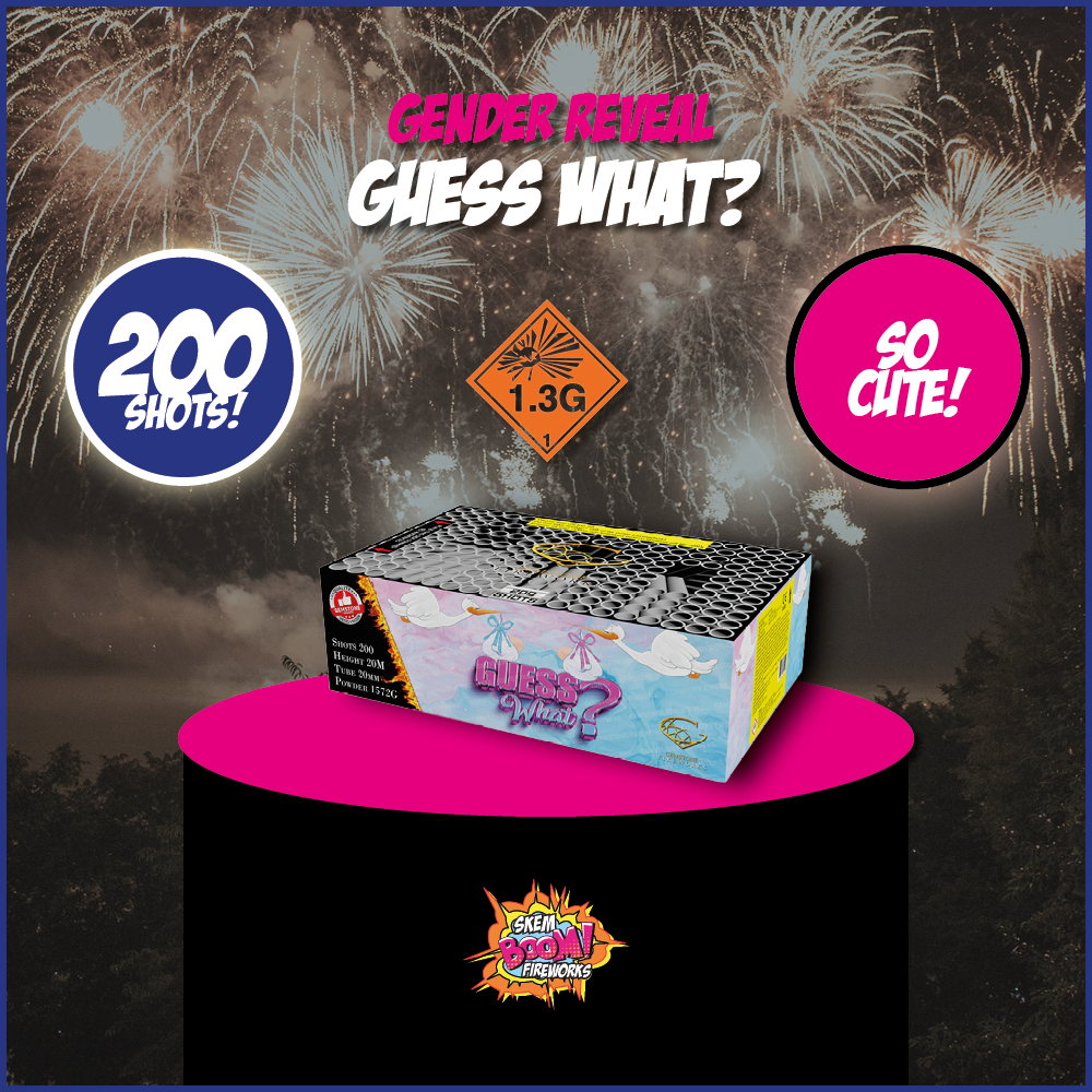 Your gender reveal will be the talk of the town as 200 shots burst overhead in an awe-inspiring festival of heart-swelling colour. Watch the curiosity of your friends and family grow as you countdown to the big reveal!