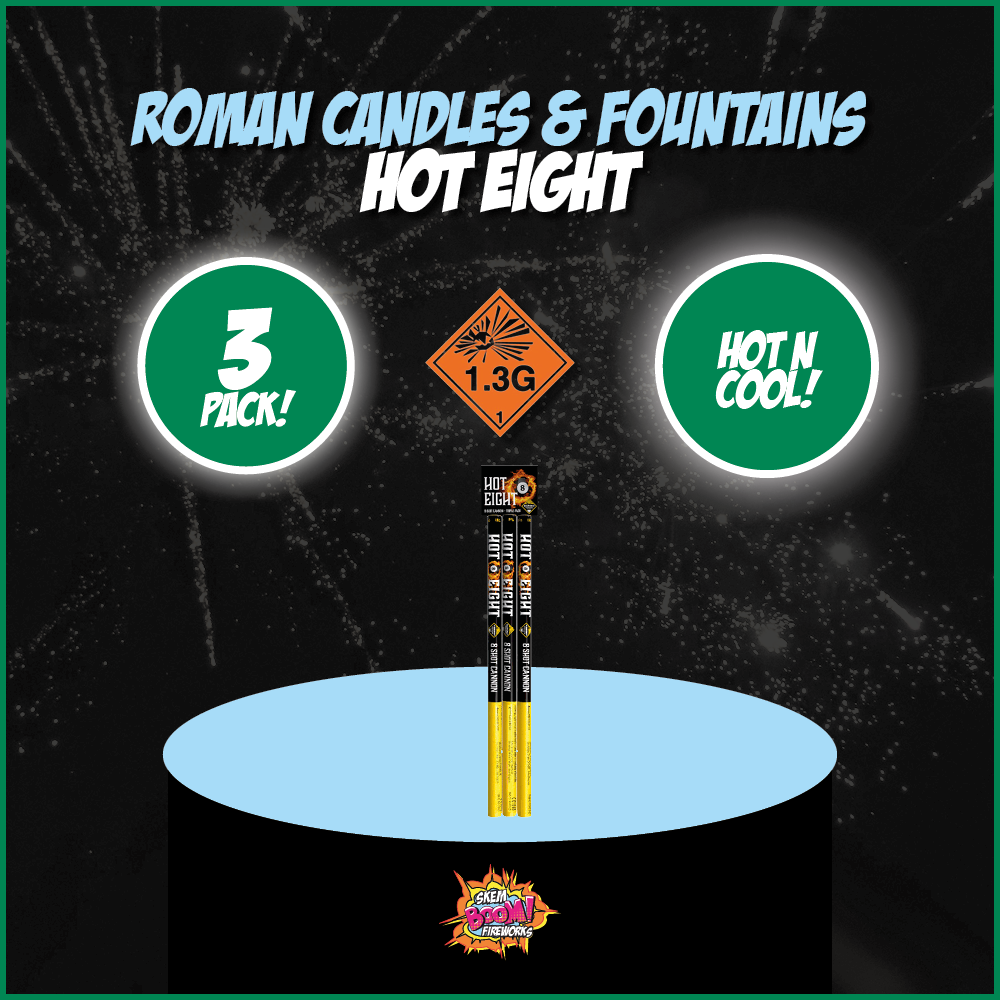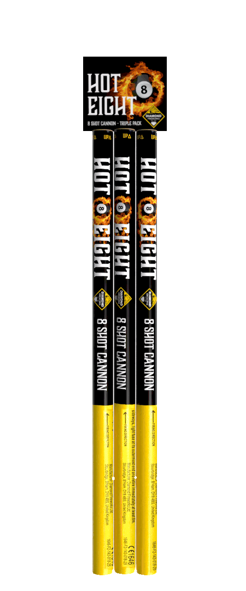 Turn the heat up with Hot Eight, our three pack of 8 shot cannons, with four different effects and colours, this packs a serious punch!