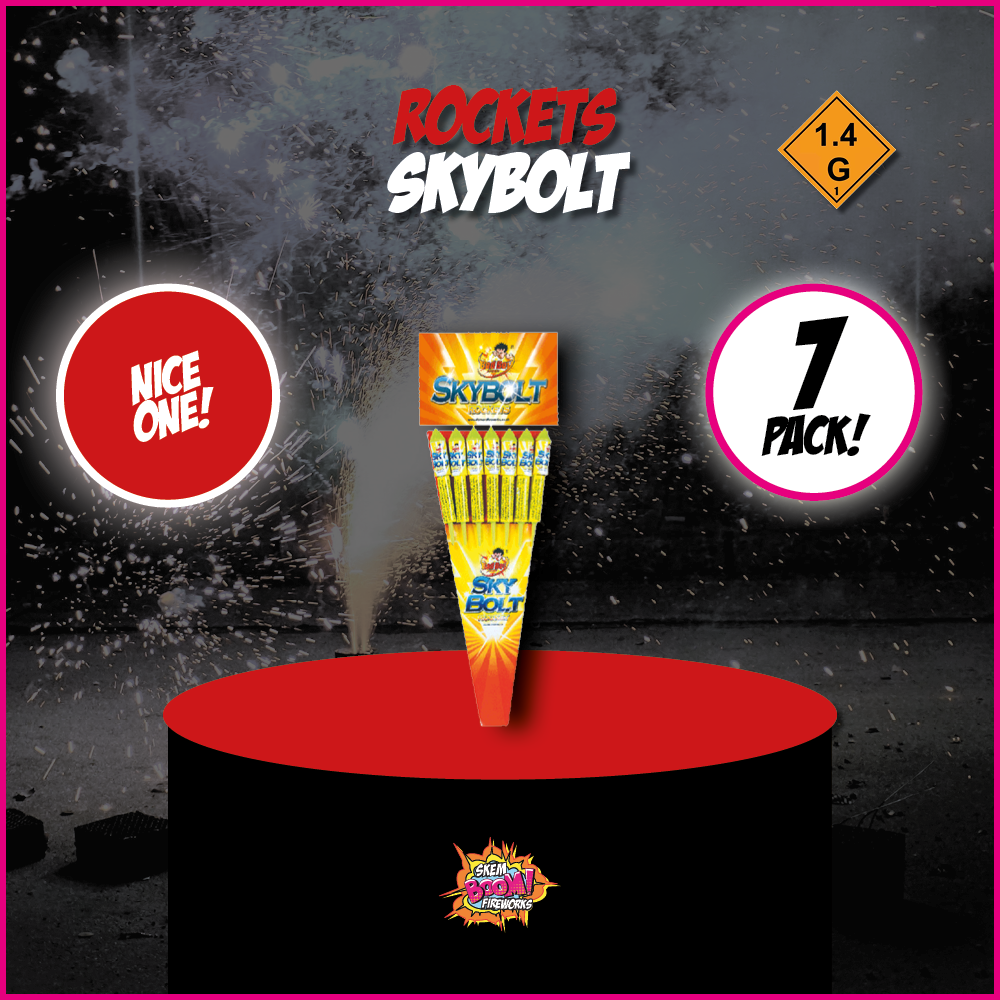 Watch with awe as this 7 pack of rockets bolt across the sky, exploding into varied coloured peony.