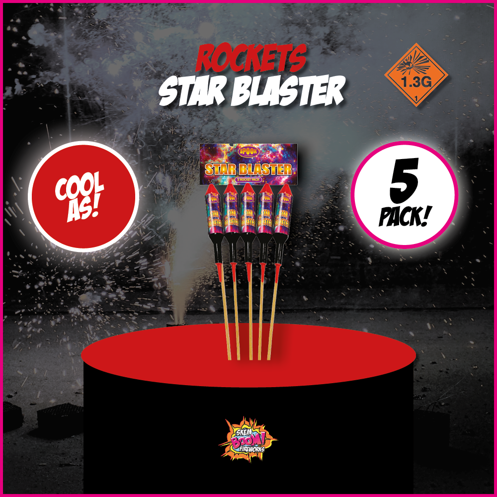 Unleash a dazzling symphony of sights and sounds with the amazing Star Blaster. Each one promises a unique show, from shimmering gold to regal purple, cascading brocade crowns that give way to blue, red or green-gold willow cascades of sparks and stars, with a crackling crescendo to really fire up the night sky.