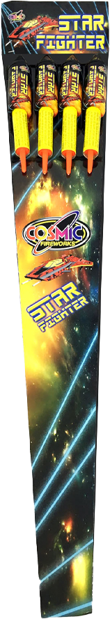 Four twin bursting rockets with radiant red, gripping green or vibrant gold coloured palms. Watch the star fighters hurtle upwards in a startling race into the skies. And don't forget each rocket's stunning grand finale – silver or green strobes with crackling stars.