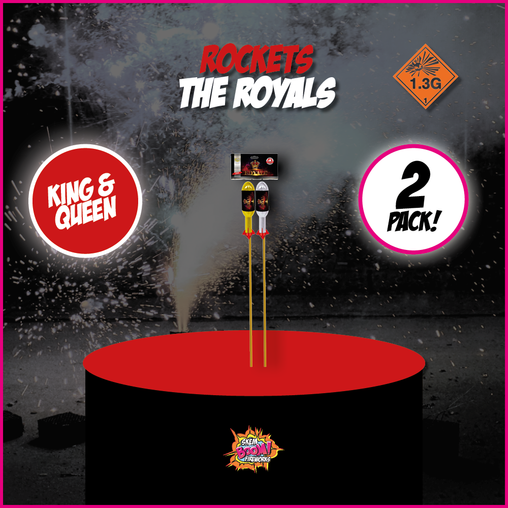 The king of fireworks, the Royals twin pack contains twin rockets, the biggest available in the UK. Ignite one for a spectacular burst of golden willow, and follow that up with its twin, with long-last glittering strobe effects. When one Royal just isn’t enough, this majestic twin set will hit the spot.