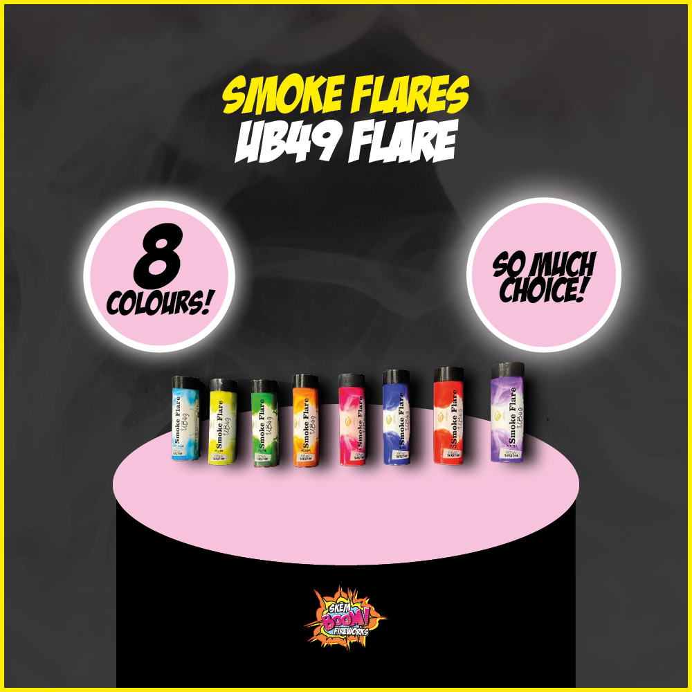 Introducing Skem Boom Fireworks' UB49 Flares – where innovation meets illumination in a stunning display of radiance. They have more than 8 colours each and have a 60 second duration!