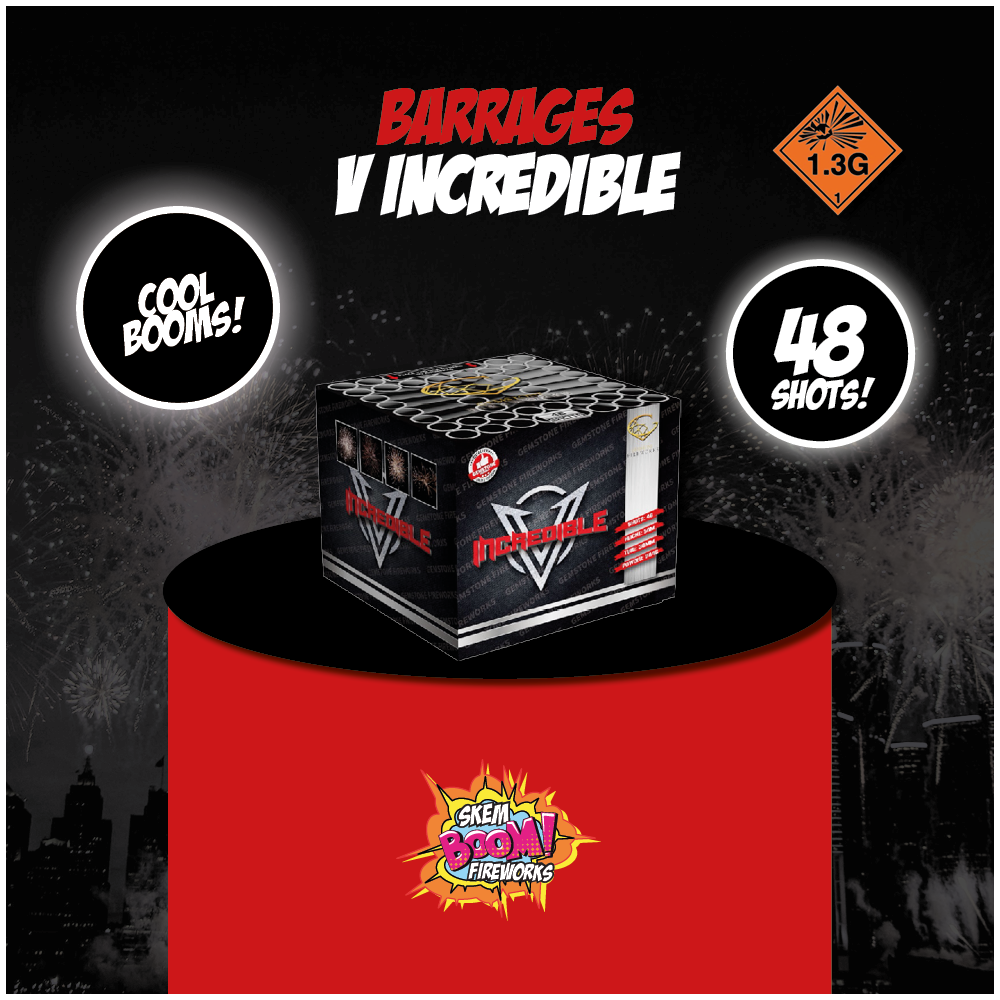 A 48-shot unit that lives up to its name, V Incredible delivers nothing short of an airborne spectacular. Watch in amazement as the sky fills up with glorious colour, amazing effects and sensational sounds ranging from coloured palms, glittering willow and crackling chrysanthemum. Not just incredible…V Incredible!